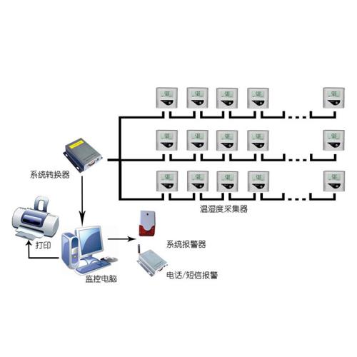 本系統主要針對多點環境和設備內溫度、濕度的集中監控和管理,是一套可無人值所24小時不間斷實時監控記錄的自動化監測系統。系統能對大面積的多點的溫濕度進行監測記錄,并將溫濕度數據實時傳輸到PC機上,利用系統監測軟件進行數據存儲與分析,并輸出打印歷史數據和曲線圖,在設備異常情況下還以現場多媒體音響、聲光報警器、電話報警、手機短信息報警、網絡客戶端報警等多種形式的通知相應監管人員。設備本身具有數據存儲功能,在電腦關閉或溫度監測軟件沒有開的情況下,溫度采集器仍然自動保存數據。在停電情況下,可利用配備的不間斷電源供電,保持系統的運行。當來電時可以通過溫度監測軟件下載調取設備內部存儲的數據到電腦,以符合藥監局每天都有數據的要求(軟件未開溫濕度數據不會丟失)。克服了以前靠管理人員手工檢查、測量和手工計算溫度值和濕度值,提高了倉庫溫度和濕度的檢測速度和檢測精度,節省了大量人力和物力,減輕了溫濕度管理的工作強度,提高了管理效率。